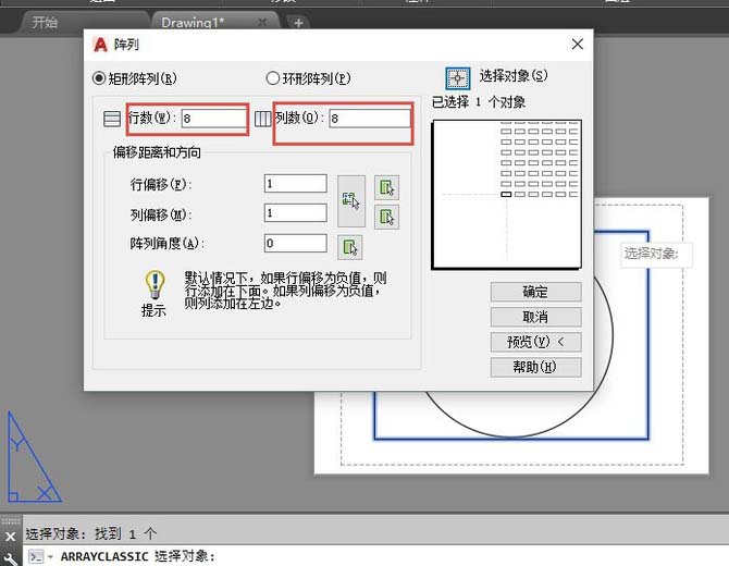 4、单击行偏移和列偏移后面的大按钮,在图中拾取一个比视口稍大的方框,如图所示。