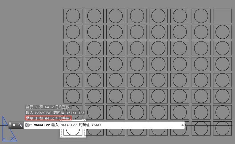 因此视口增多,无论如何都会增加数据量,影响CAD的操作性能,所以CAD对于同时可显示的视口是有限制的,这个限制就是最大激活视口数量,而且这个数量是我们可以设置的:MAXACTVP。下面我们就通过一个简单的实例来看一下如何视口数量超出限制后是什么效果,并且看一下如何设置这个限制数量。何设置这个限制数量。