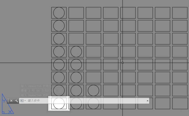 5、单击确定按钮,阵列生成64个视口。双击鼠标中键,显示所有视口,我们看看视口显示的效果。我们可以看到右上角的视口显示空白了,从此我们也知道CAD中最多可以显示63个视口。如果我们的布局中有视口显示空白,我们就需要检查一下我们的视口是不是太多了。有时看到某些图纸的布局中视口并没有那么多,但仍有视口没有显示,原因通常是类似的,只是人为修改了激活视口数量的限制。