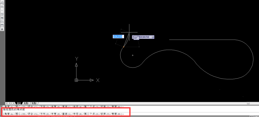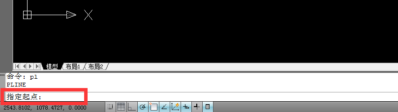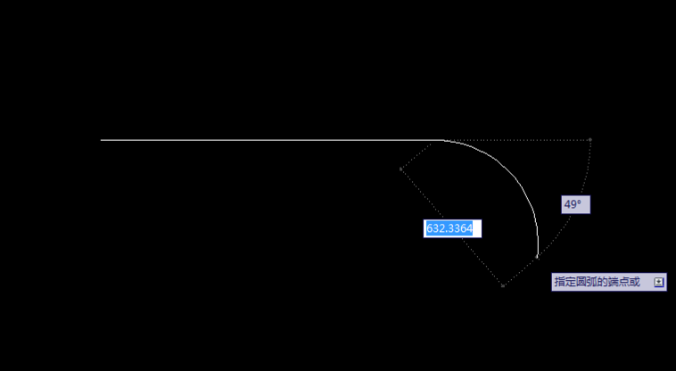 3、提示指定下一点,或绘制圆弧、指定线宽。现在我们先绘制一条线段。