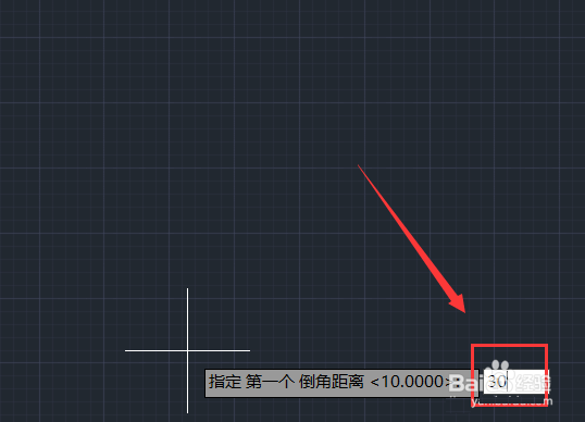 5、输入P后,按下回车键,输入第一个倒角的距离30,如图所示: