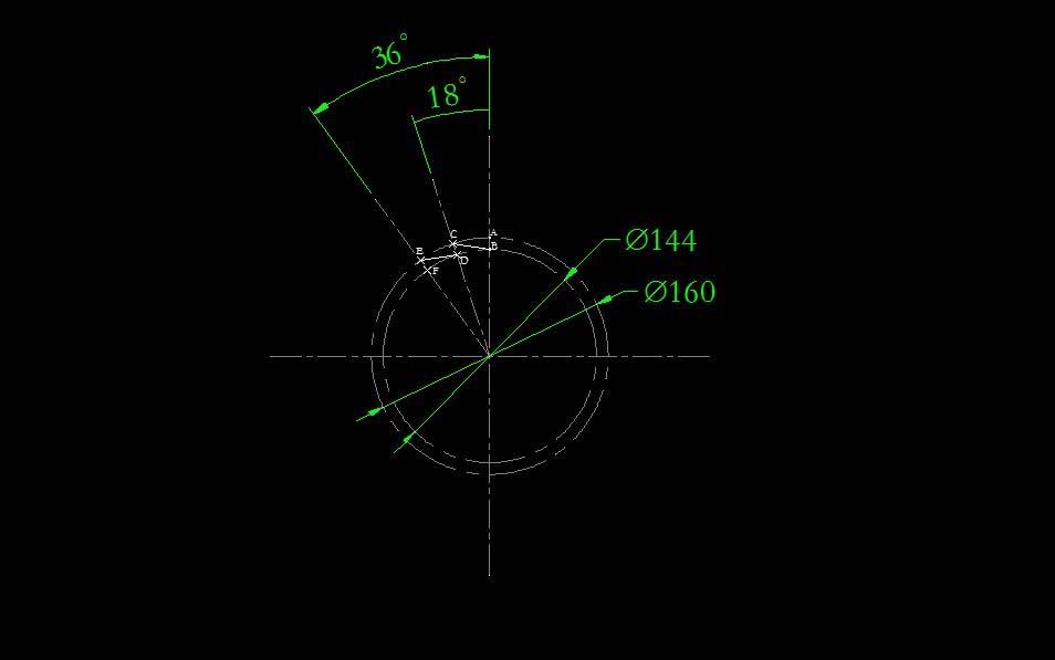 2)以中心线的交点为圆心绘制直径160和直径144的圆(这两个圆是做辅助用的)