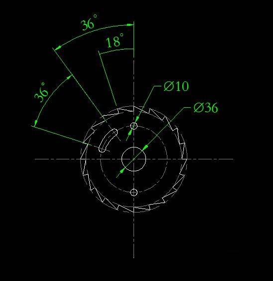 8)以十字中心线的交点为圆心,绘制一个直径为36的圆