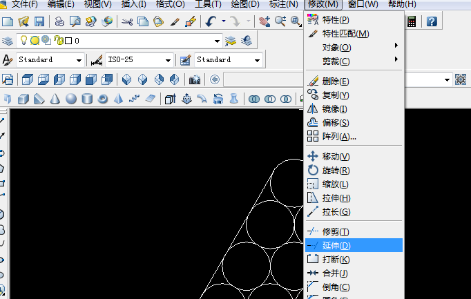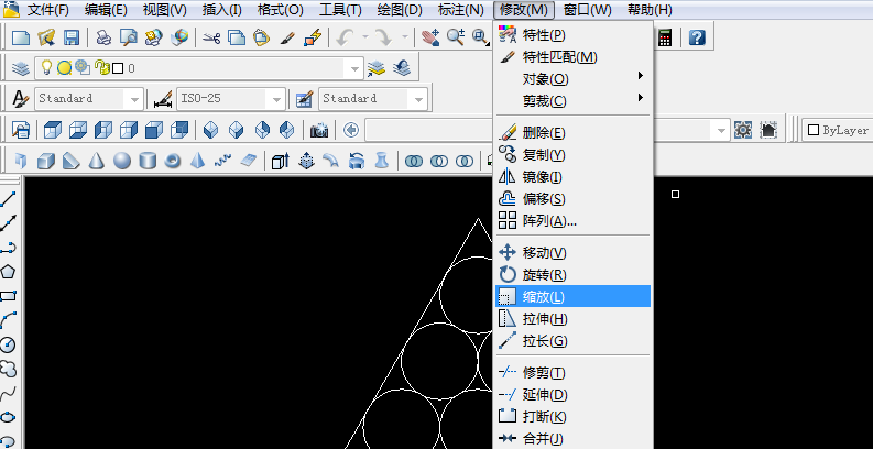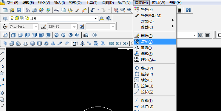 2、点击“修改”中的“复制”命令,或者工具栏中的“复制”命令图标,复制圆。如下图