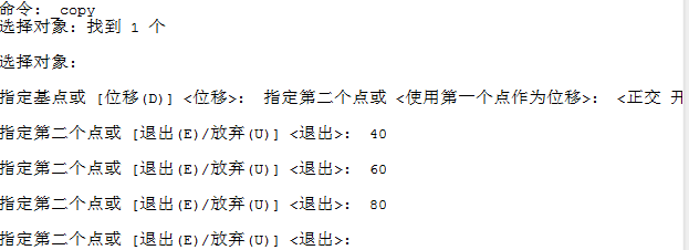 3、复制的时候命令行分别输入20,40,60,80几个参数,中间需要按回车键。命令行和效果图如下。