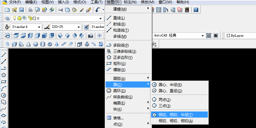 4、选择“绘图”栏中“圆”命令选项中的“相切相切半径”如下图,画上面十个圆,效果如下图。