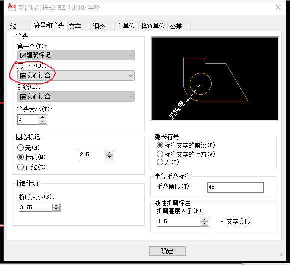 在建筑结构图中,通常会在一幅图中同时包含建筑标记(用于线)和实心箭头(用于标注半径等),如何在一种标注样式中实现呢?