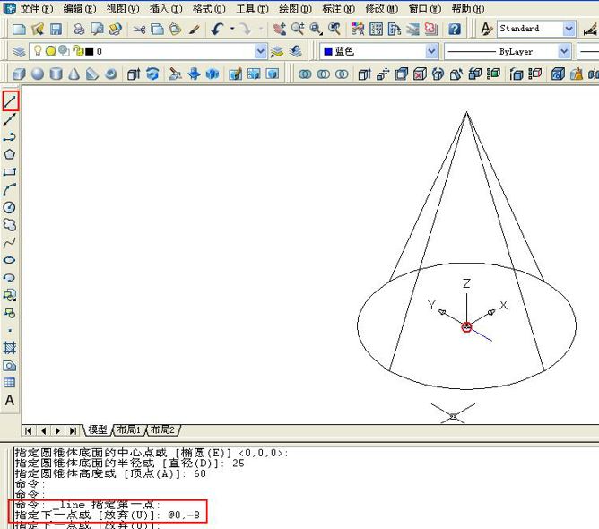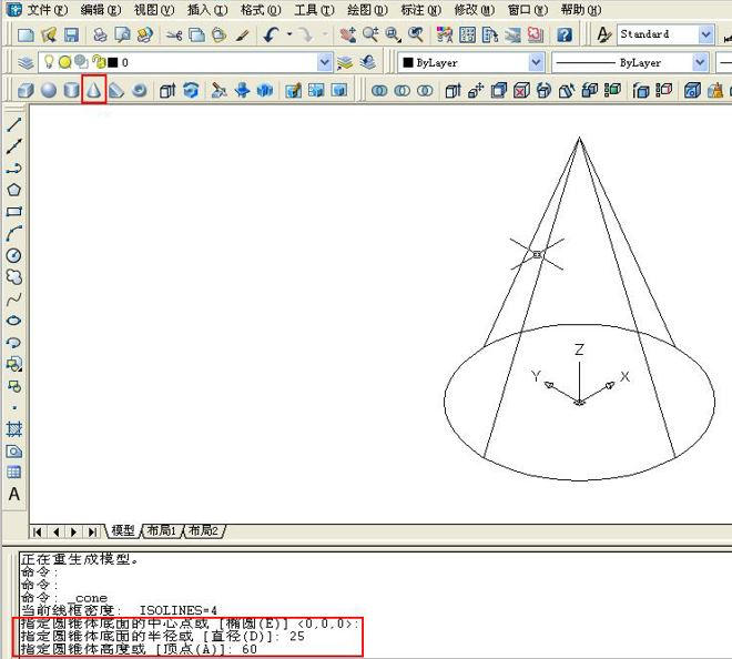 2、利用建模中圆锥命令,画一个底面直径是25,高是60的圆锥体。