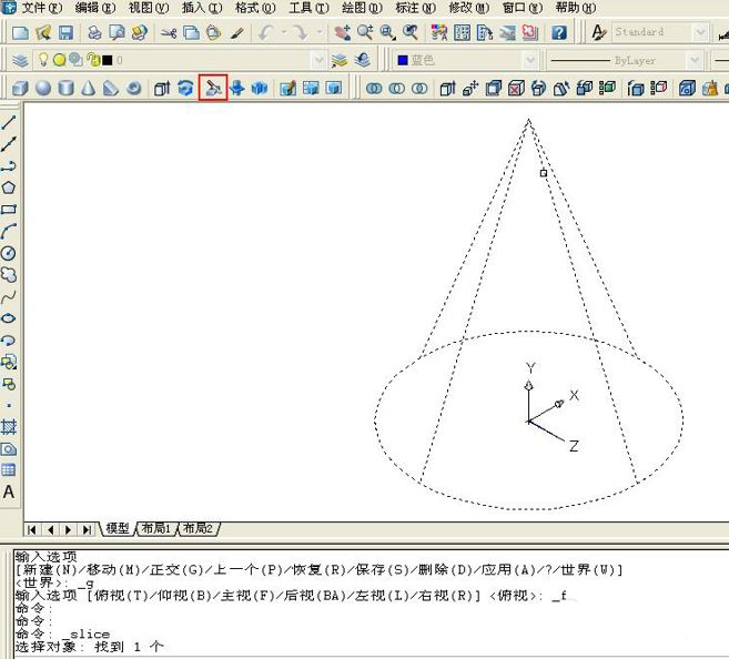 4、在“修改”中点击“三维操作”里面的“剖切”命令,准备剖切。