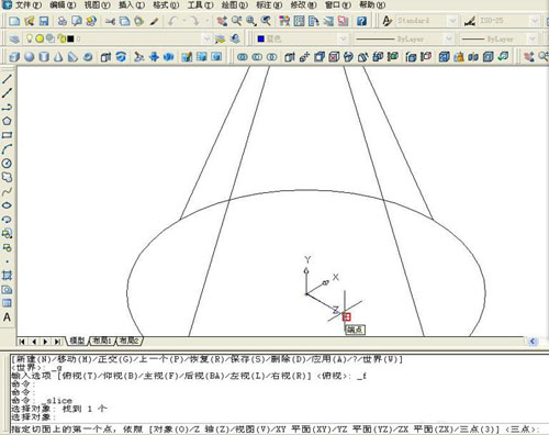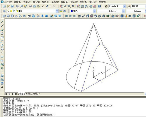 7、任务栏提示:在保留的那一侧任意点击一点,剖切完成。