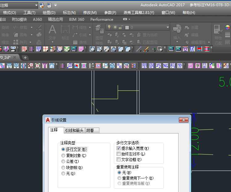 2、进入设置后,其会弹出快速引线设置,切换到公差选项,然后点确认;