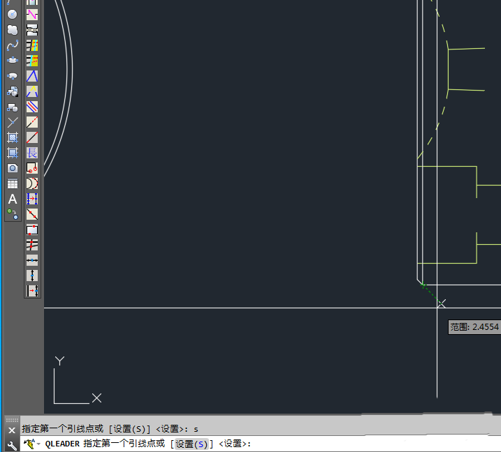1、启动CAD2017软件,使用快捷命令LE;在弹出的指定第一个输入点时,先输入S;