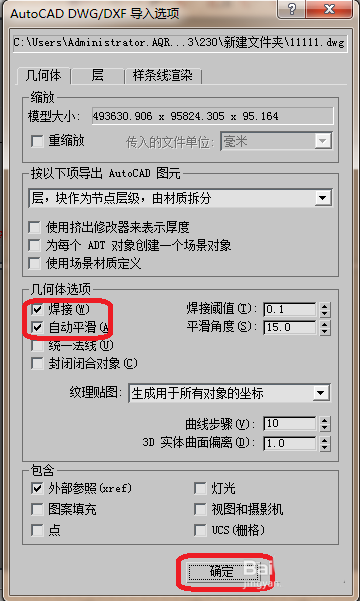 5、选择“焊接”和“自动平滑”在单击“确定。