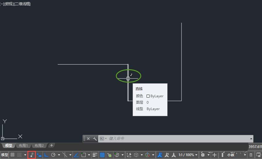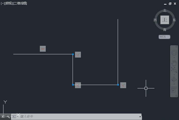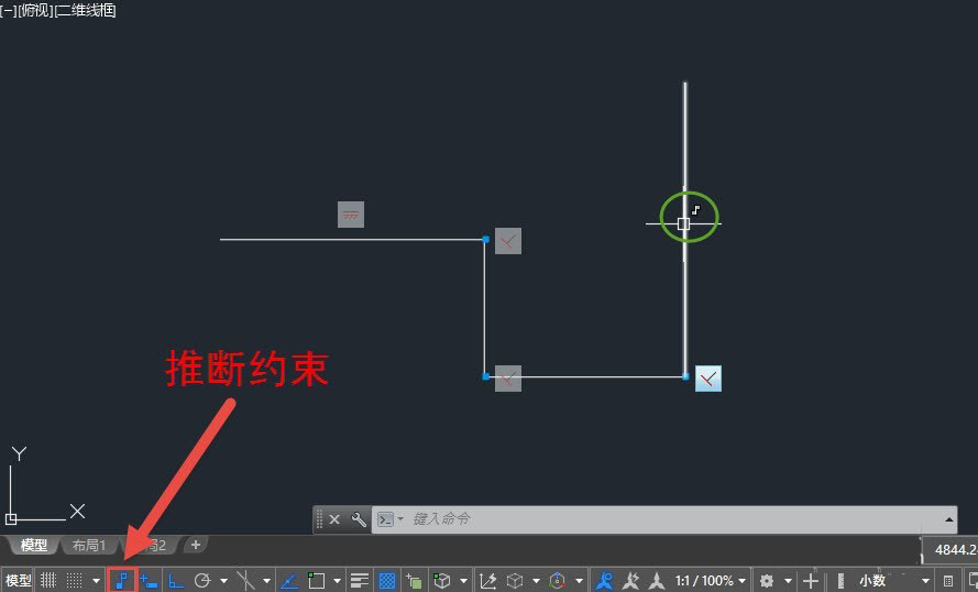 3、如果约束只是被隐藏,即使推断约束被关闭,当光标移动到有约束的图形上时,十字光标仍会显示约束标记,如下图所示。