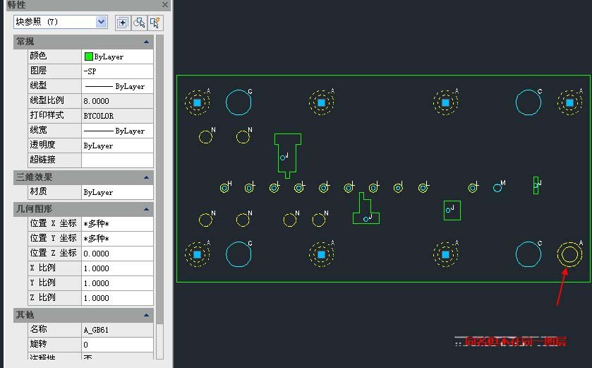 2、当我们需要统计某种图块的数量或者全部删除某种图块的时候也这个功能也很方便,会自动将同一图层上的同名的图块过滤出来,如下图所示。
