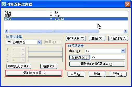 1、对象选择过滤器原来是CAD扩展工具里的功能,但现在基本上成了CAD的一个基本功能,命令是FILTER。 对象选择过滤器跟快速选择有些类似,不同的是:对象选择过滤器一次可以设置多个条件,而且可以单击“添加选定对象”按钮拾取图中对象来获取条件,然后将多余的条件选中后删除;设置好过滤器后可以保存,下次选择的时候还可以再用,如下图所示。