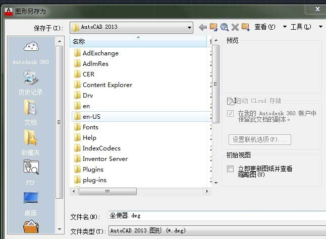 1、正常启动autocad2013软件,选择“文件|保存”菜单命令,将其保存为“坐便器”文件。