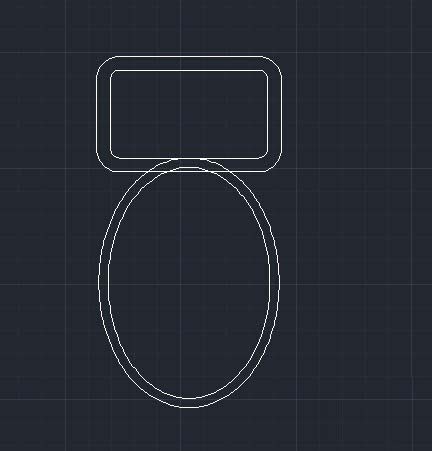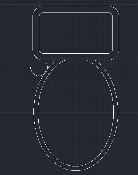 7、执行“圆弧”命令(A),过矩形左下侧的点和椭圆上的一点绘制一条弧线,并将多余弧线进行修剪(TR)操作,最后执行“镜像”命令(mi),将这条弧线水平镜像到右侧,至此,坐便器已经绘制完成。