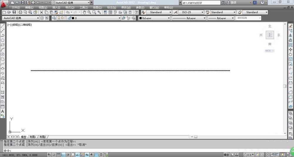 2、然后输入CO快捷键或者选择菜单栏中的“修改”→“复制”,选中刚才所画的这条直线原地复制一条,原地复制的方法是,在系统提示选择第一点的时候你选中左端点,提示选择第二点的时候你仍旧选择左端点,然后系统还是提示选择第二点,此时你选中退出即可,这样一条重叠在原来的直线上的一条直线画好了。如图所示
