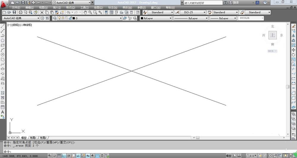 5、输入快捷键L直线命令,将刚才的两条直线的左右两个端点链接起来,也就是画两条垂直的直线,最后结果如图所示。