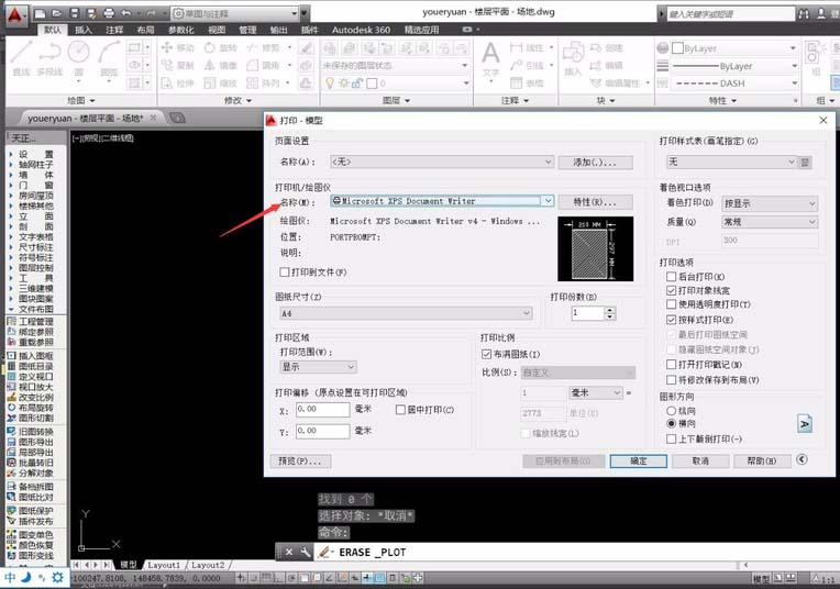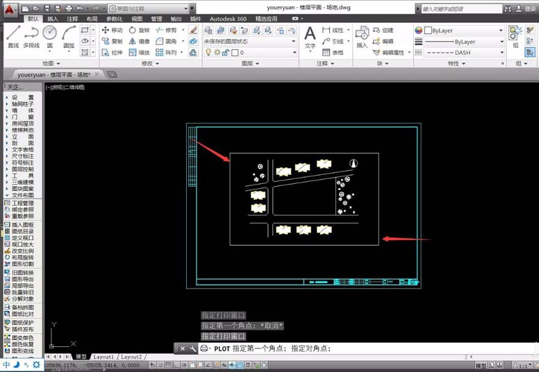 3、确定开启特定文件之后,我们的文件就会显示在AutoCad的工作区域,这样我们就可以开始进行导出命令,导出PS格式文件我们需要选择“打印”命令。