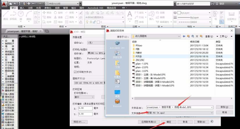 8、完成打印设置后,我们即可点击“确定”,AutoCad会弹出文件保存路径设置,选择合适的路径后,即可点击保存,进行图纸的保存,可以看到格式为“封装PS”。