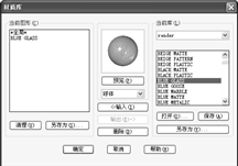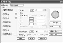 4、在“当前库”中,小编选择BLUE GLASS材质,然后选择“输入”,完成材质的添加,预览效果后确定,返回【材质】对话框: