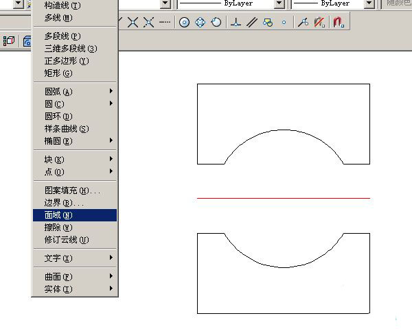 3、转换面域命令路径:绘图<面域