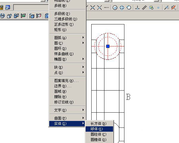 6、绘制滚珠命令路径:绘图<实体<球体直径6