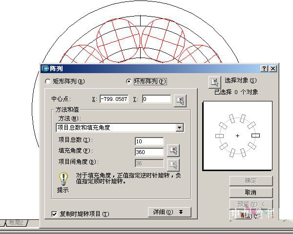 7、阵列滚珠转换左视图圆形阵列滚珠,可以预览下,看看有没相交的滚珠