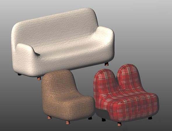 7、最后来看下单人沙发、双人沙发及三人沙发并在一起的渲染图。