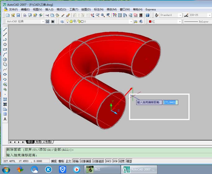 4、选择适当的抽壳距离(壳的厚度),回车确定。