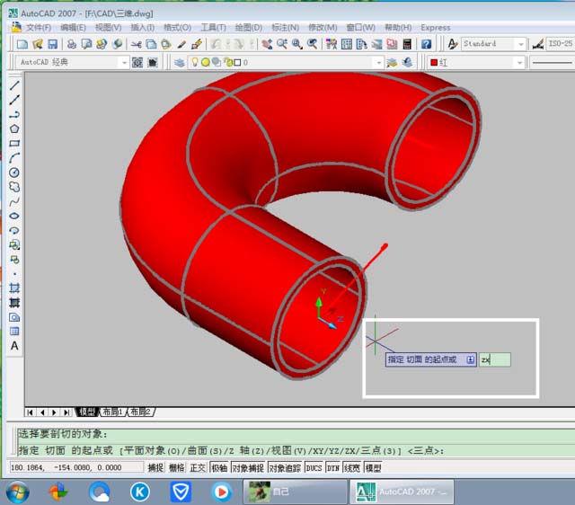 3、输入需要剖切的坐标系,并回车。图中为zx坐标。
