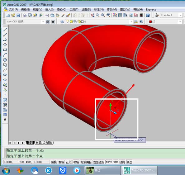 4、选择,已经输入坐标上的两点。选择坐标0点,在向下拉,在z轴点选,回车确定(图中)。