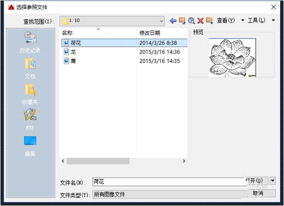 1、插入工具,选择光栅图像参照,选择插入的图片(图片尽量线条清晰)。