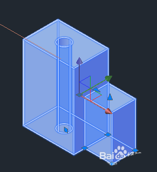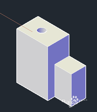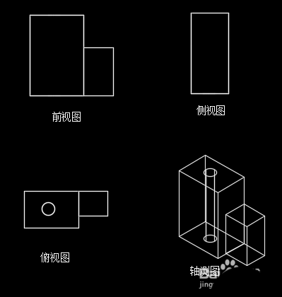 1、以一个简单的立体模型来说明。当做好立体的三视图后,你需要添加一张你想要的固定好角度方向的立体示意图放进二维里面。