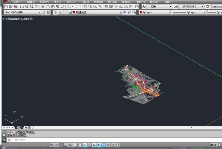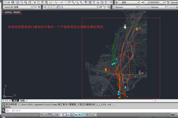 1、启动auto cad,打开需要修改的图纸。在俯视图里,我们可以看到图纸线条好像都在一个平面上。如下图: