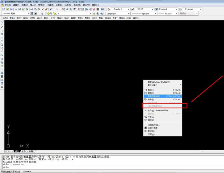 2、但是打开天正cad,右键发现没有“原位粘贴”选项