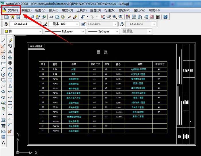 2、首先的开cad软件,如下图所显示,在单击文件。