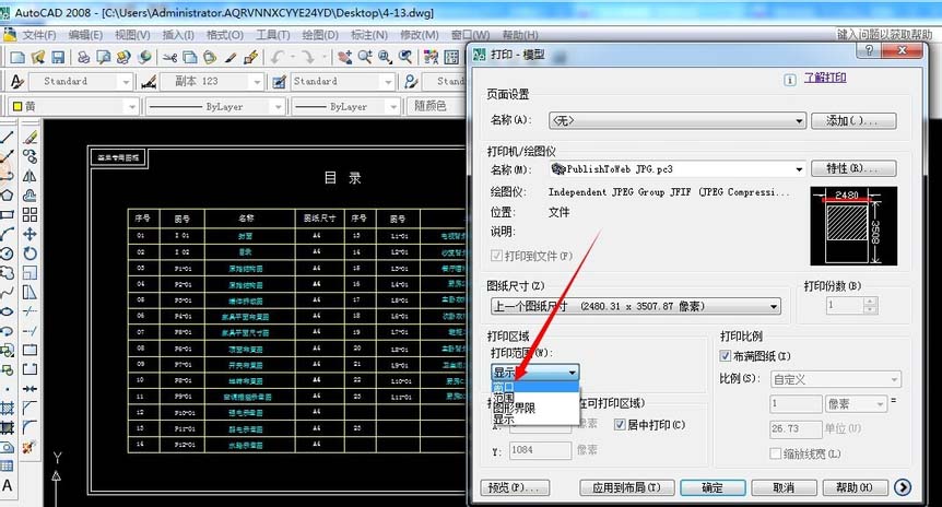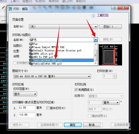 4、这里选择如下图三角符号,在选择publishtoweb jpg.pc3。
