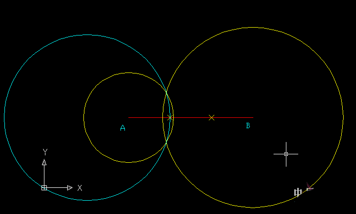 根据三点确定一个圆这个最简单的定理,我们只要能找到这个圆上的三点,那么就可以根据这三点作出这个轨迹圆(也就是阿氏圆了),假设这个比为1:2,那么过程如下divide命令把AB平分为3份,那么AP/BP=1:2 过A点做一半径为X的圆,过B点做一半径为2X的圆,X任意,确保两圆能相交就可以了(黄色的两个圆)用三点作圆(一点为靠近A的平分点,另外两点为上面两个黄色圆的交点),得到青色的圆就是我们所求的轨迹圆
