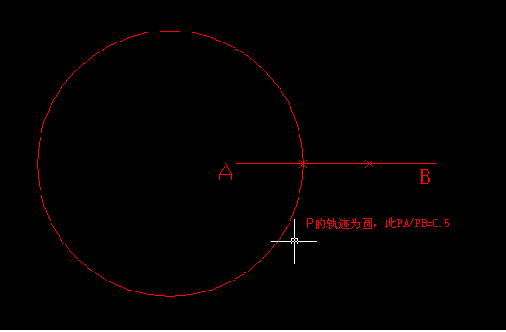 B,设P点在同一平面上且满足PA/PB=λ,当λ>0且λ≠1时,P点的轨迹是个圆,这个圆我们称作阿波罗尼斯圆。如图PA=PB=0.5