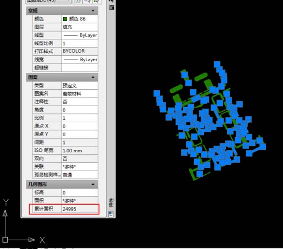 4、关键的一步,关闭其他图层,至保留填充图层。框选所有的填充块,然后CTRL+1!结果出来啦,最下边的累计面积,就是我们要的总的绿地面积。