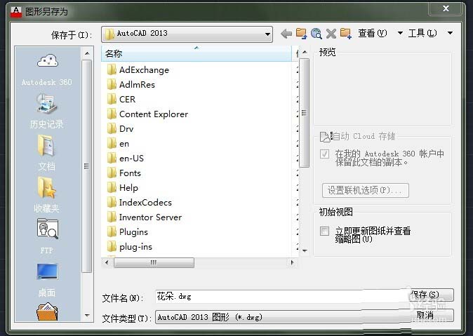 1、正常启动auto cad2013软件,选择“文件|保存”菜单命令,将其保存为“花朵.dwg”.