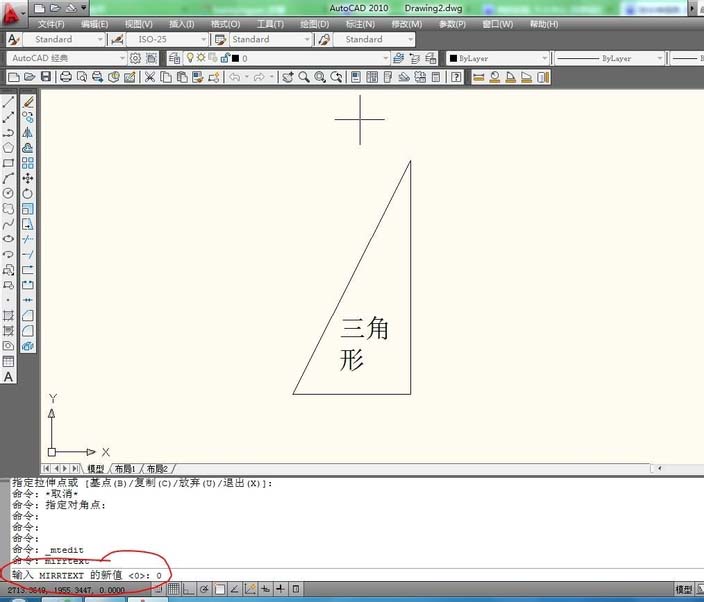 3、输入“0”,再回车,就OK了(如果输入“1”,则表示对文字进行镜像)。