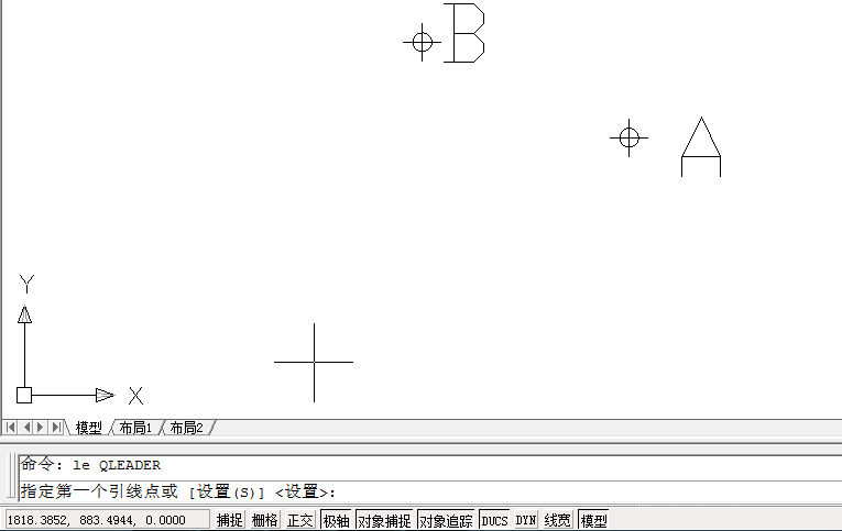 4、命令:LEADER,指定引线起点:(选取图中的A点作为引线起点)