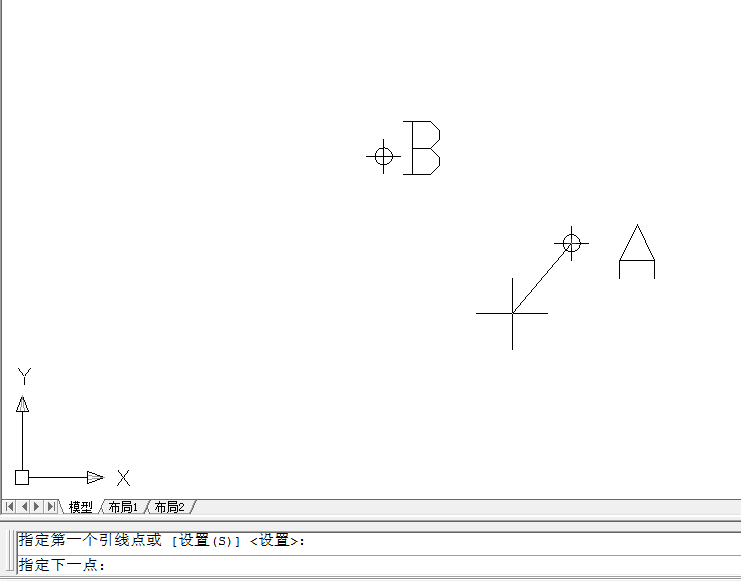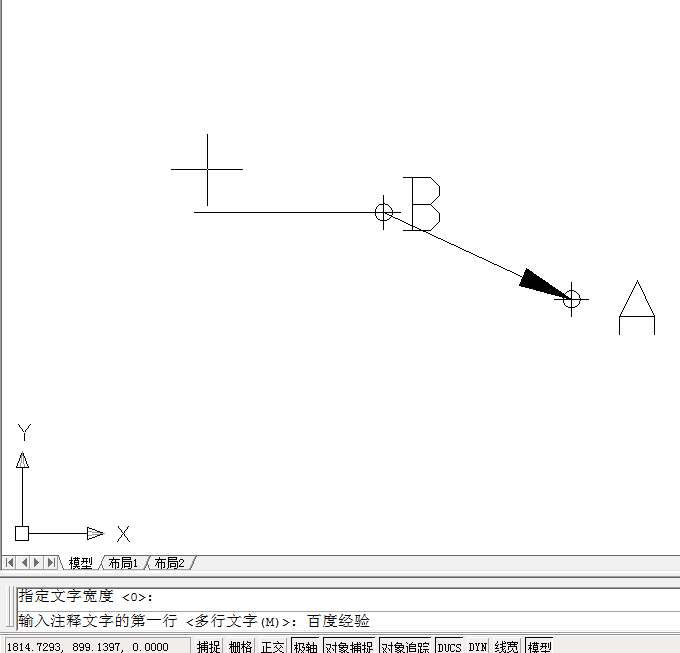 5、指定下一点:(选取图中B点)指定下一点或[注释(A)/格式(F)/放弃(U)]<注释>:A(输入A或直接按Enter键)