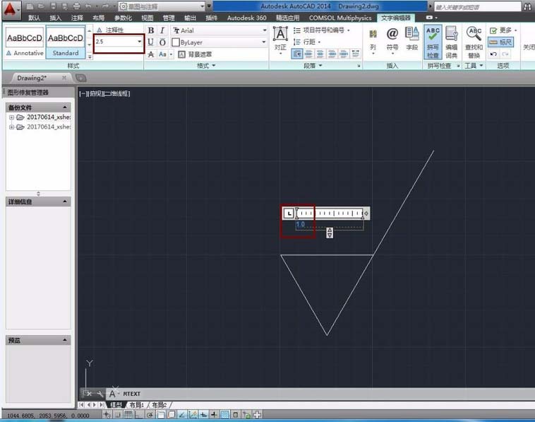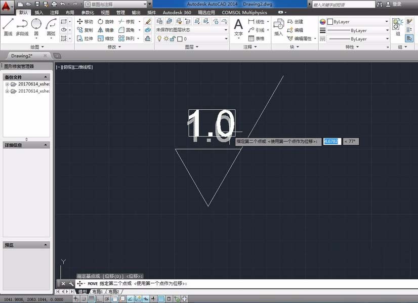 6、文字大小可以通过改变文字高度来改变。选中文字,在文字高度设置框里输入20.文字高度由原来的2.5变成20。