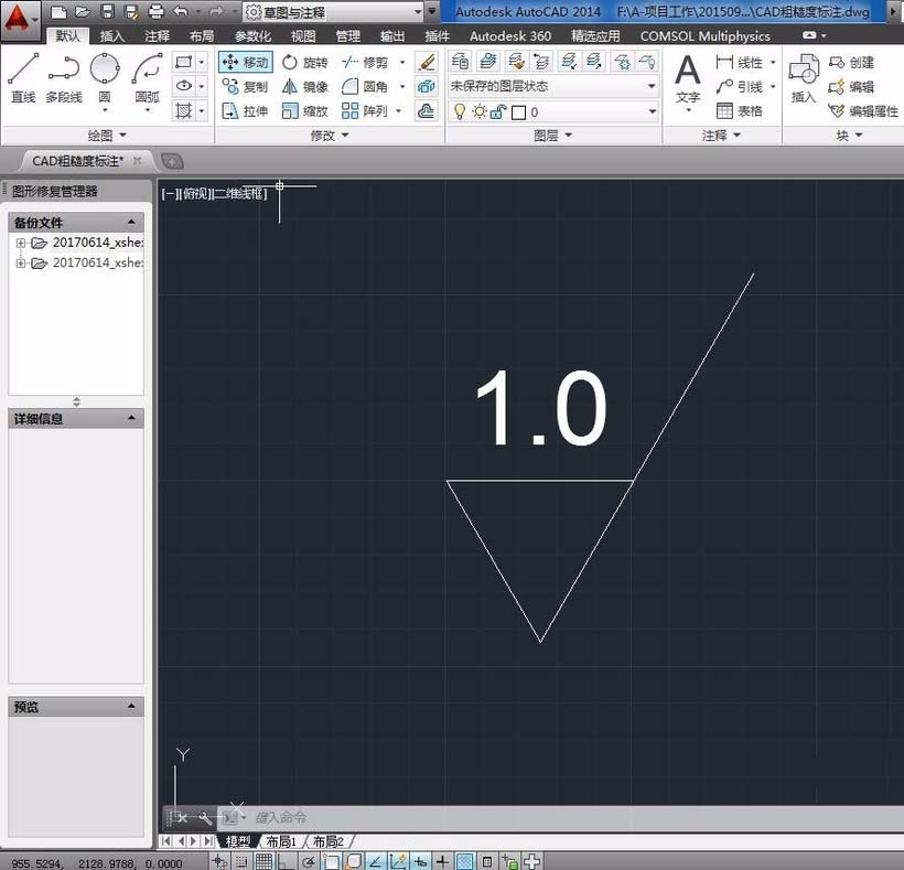 AutoCAD中并不能直接插入粗糙度符号,需要自己绘制,需要注意的是,这里小编只教大家如何使用CAD绘制符号,表面粗糙度符号的尺寸和文字大小是有国家标准的,请参考GB/T131-1993给出了详细的信息。