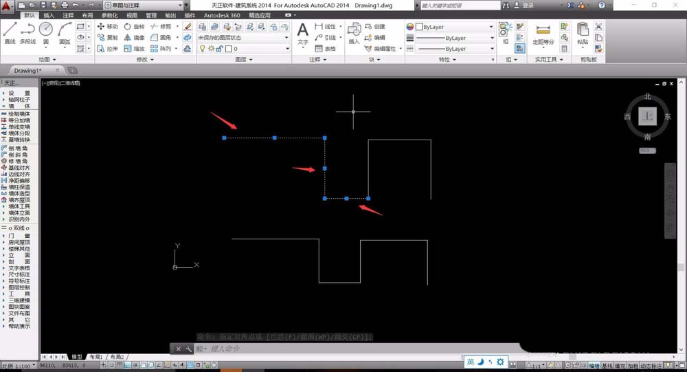 1、从左上角为起点进行框选,前两条线段完全框选,而第三条线段我们只框选一半。